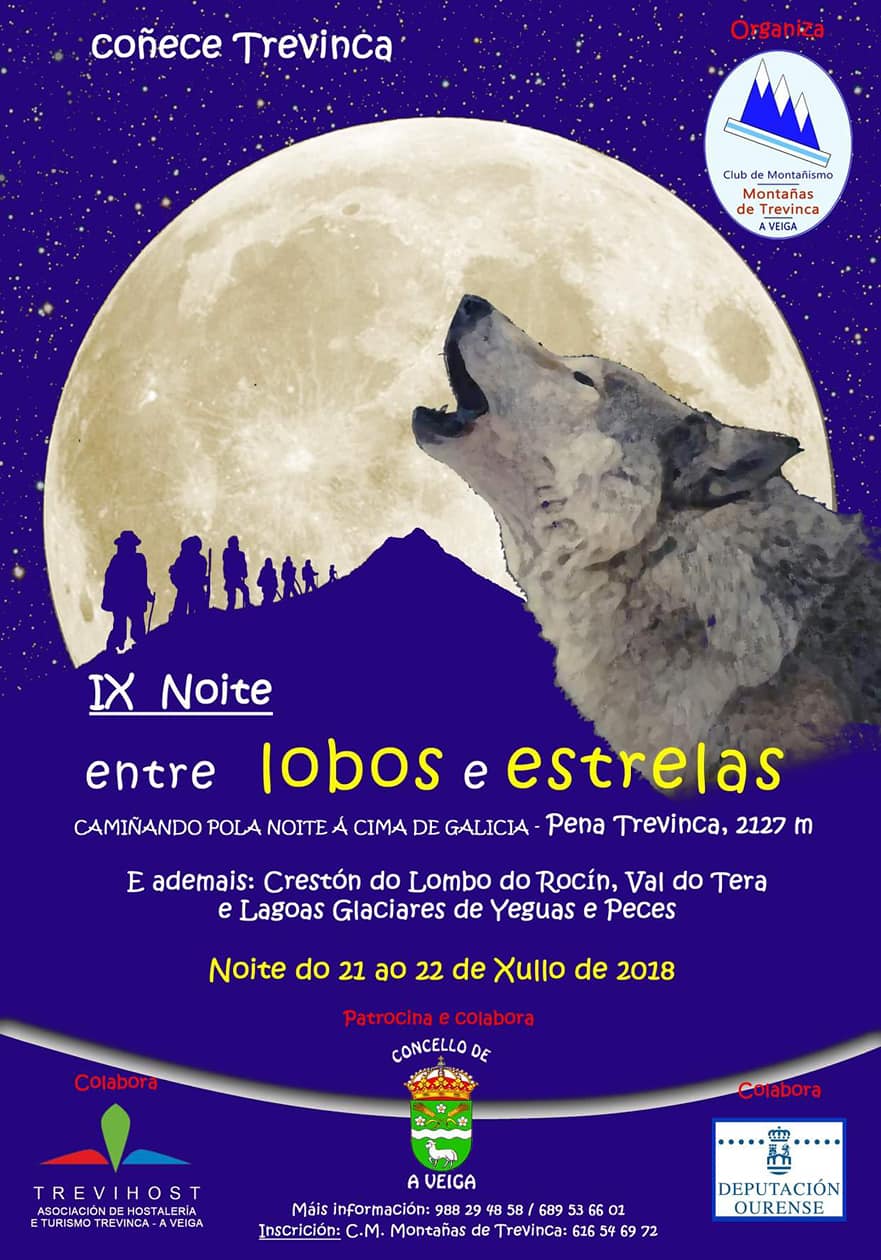 El Club de Montañismo Montañas de Trevinca de A Veiga ha organizado la “IX Noite entre lobos e estrelas”, del 21 al 22 de julio. Se trata de una caminata nocturna por la cima de Galicia, Pena Trevinca (2.127 metros de altitud) y parajes como el Crestón do Lombo do Rocín, Val do Terra y lagunas glaciares de Yeguas y Peces.