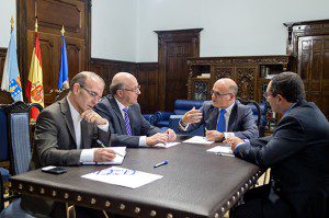 Reunión de Manuel Baltar (Presidente da Deputación), Agustín Fernández (Alcalde de Ourense), José Ángel Vázquez Barquero (Concellal do Concello de Ourense) e Argimiro Marnotes (Deputado Provincial de Termalismo).