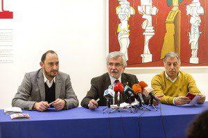 Presentación os medios da exposición de Eugenio Granall. Asiten Rosendo Fernández (Vicepresidente Deputación de Ourense), Eduardo Valiña (Comisario da Exposición) e Francisco González Bouzán (Director do Centro Cultural).