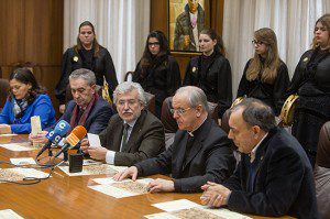 Presentación do tradicional concerto de Nadal da Real Banda de Gaitas da Deputación de Ourense, que este ano será en Xunqueira de Ambía. Asisten a Presentación Rosendo Fernández (Vicepresidente da Deputación), Jose Luis Gavilanes (Alcalde de Xunqueira), Leonardo Lemos (Bispo de Ourense), María do Ceo (Cantante) e Xose Lois Foxo (Director da Real Banda).