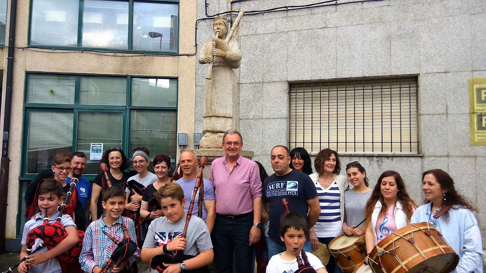 El arreglo de la estatua y el nuevo emplazamiento fue inaugurado por el alcalde, Luis Fernández Gudiña, y el concejal de Cultura, Avelino Fernández, en un acto-homenaje que contó con la participación de los alumnos de la escuela de gaitas de la localidad así como vecinos del municipio.