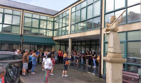El exterior de la Casa de la Cultura de A Rúa luce desde este fin de semana la estatua de piedra de la “Gaiteira”, que durante más de 20 años, desde su construcción, ocupó un espacio del área verde de “O Aguillón”.