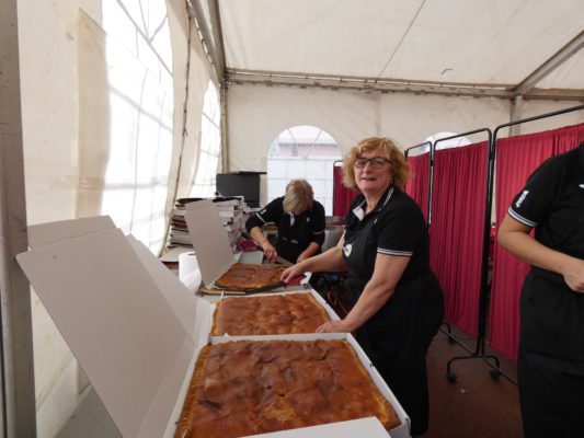 Otilia, de Mantesil, cortando la empanada