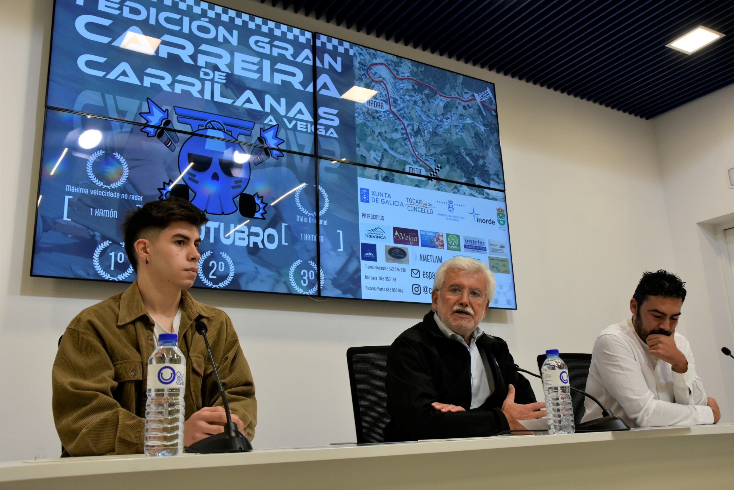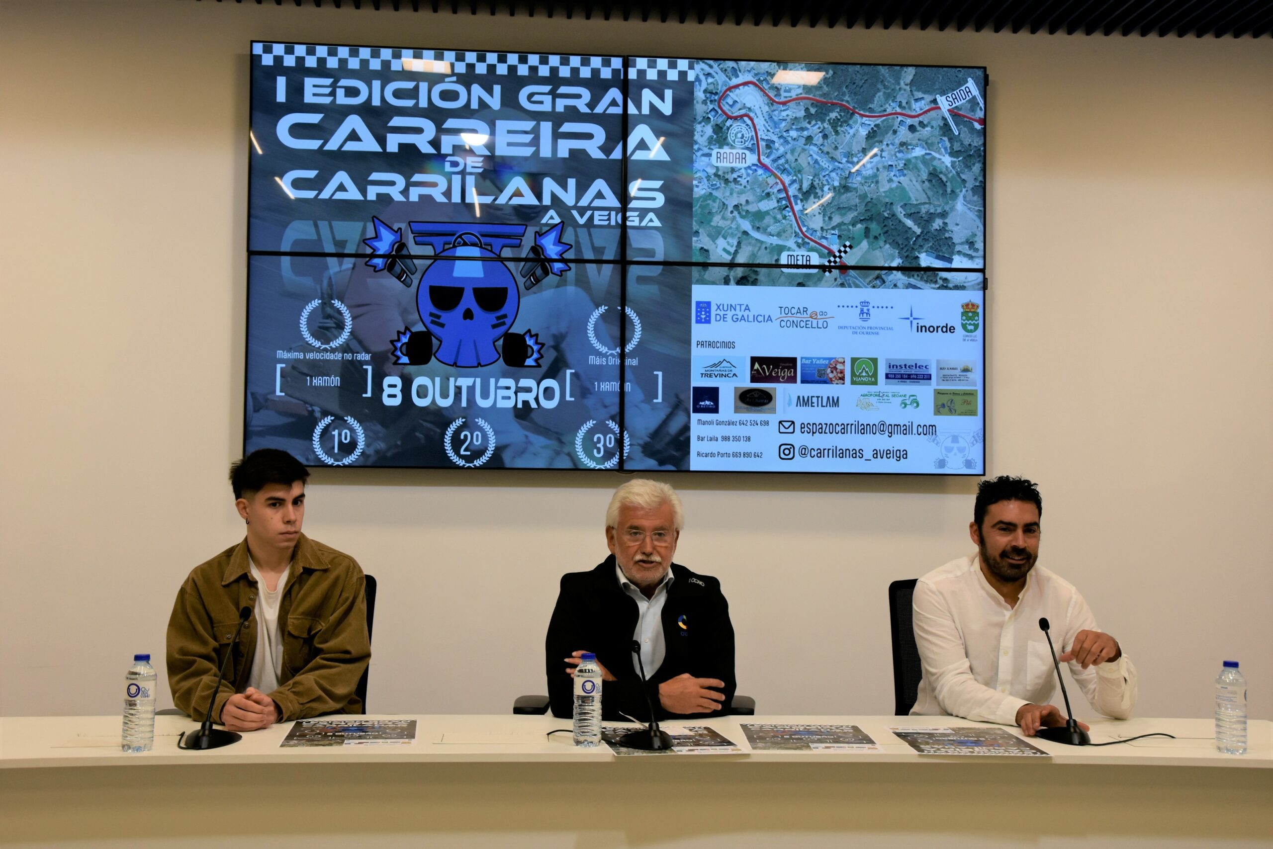 O municipio de A Veiga acollerá a primeira edición da “Gran Carreira de Carrilanas”, un evento que conta coa colaboración do Inorde e que se celebrará por primeira vez no municipio valdeorrés o vindeiro 8 de outubro. A presentación da proba tivo lugar onte na sala de prensa do Pazo Provincial, acto no que participou o presidente do Inorde, Rosendo Fernández; o alcalde da Veiga, Juan Anta; e o representante de “Espazo Carrilano” organizadores da proba, Marcos Porto.