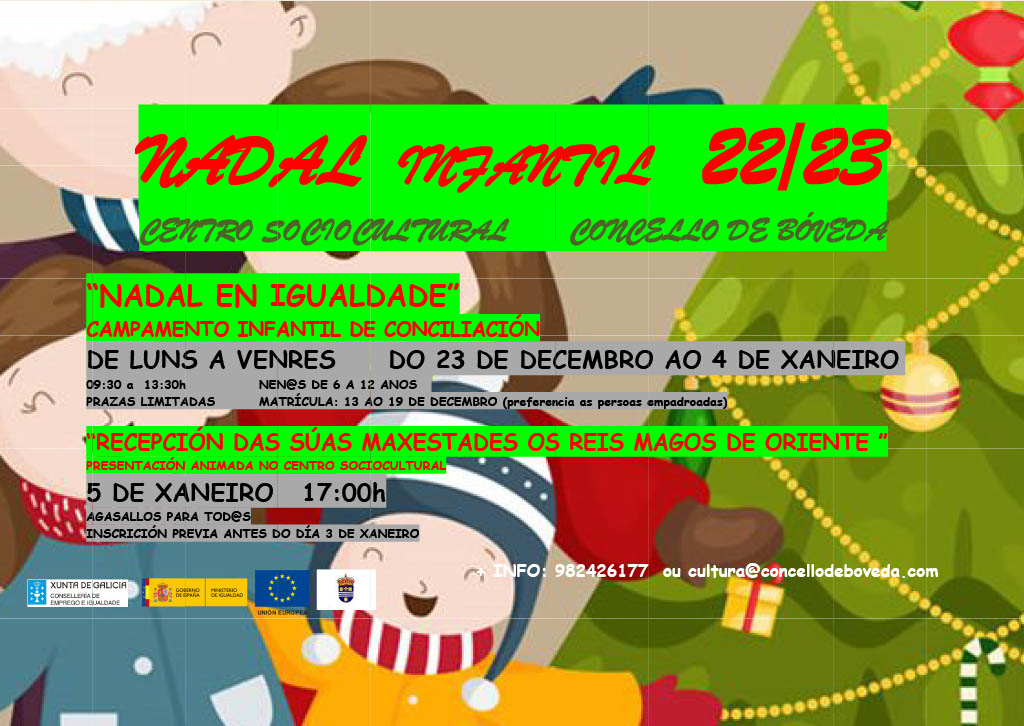 En concreto, o campamento infantil de conciliación, que xa ten o prazo de inscrición aberto, desenvolverase entre os días 23 de decembro e 4 de xaneiro en horario de 09:30 a 13:30 horas.