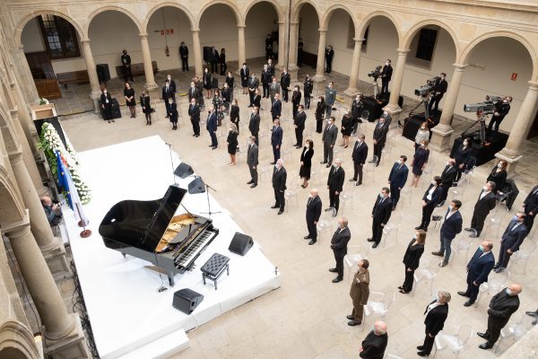 - El presidente de la Xunta, Alberto Núñez Feijóo, asistió esta mañana al acto en recuerdo de las víctimas de la covid-19