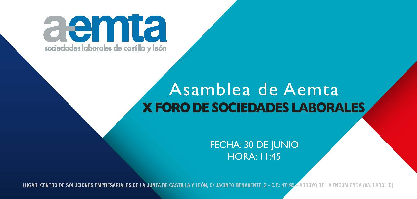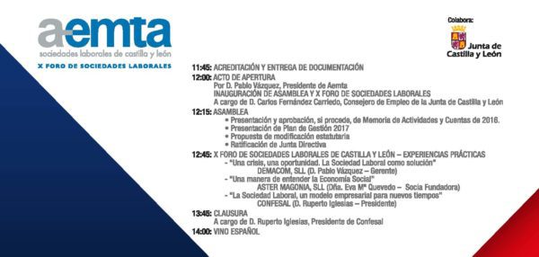 AEMTA Castilla y León celebrará el próximo 30 de junio su Asamblea Anual en el salón de actos del Edificio de Soluciones Empresariales de Arroyo de la Encomienda durante el X Foro de Sociedades Laborales. El objetivo es propiciar un espacio para intercambio y la interacción.