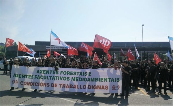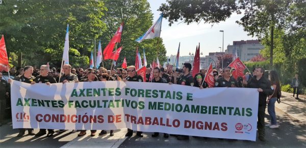 “Agentes forestales, dignidad laboral”.  Consignas como ésta fueron coreadas durante la manifestación en Santiago de Compostela, convocada por la CIG y UGT,  a la que acudieron trabajadores de toda Galicia, también de la provincia de Ourense y la comarca Valdeorras,  para reclamar un convenio que regule las condiciones laborales del personal de este sector.