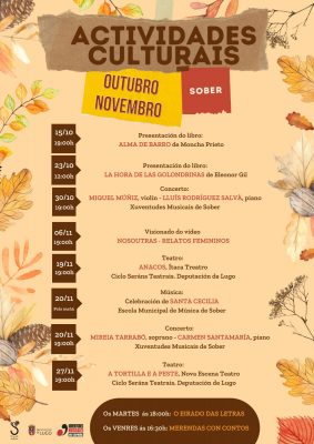 O acto terá lugar no salón de actos do centro sociocultural de Sober ás 19:00h. Xunto coa a autora do libro estará Luis Fernández Guitián, Alcalde de Sober, Francisco Alonso Villaverde, Director Editorial de Edicións Xerais de Galicia e actuando como moderador o radiofonista J. Luis Osorio.