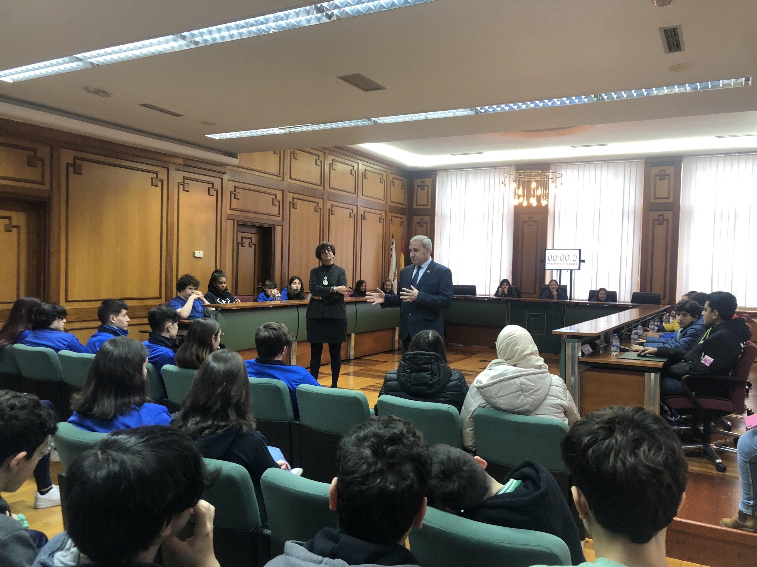 Unha alumna do centro foi a encargada de exercer funcións de Alcaldesa, e tamén houbo outra alumna que fixo o papel de Secretaria.
