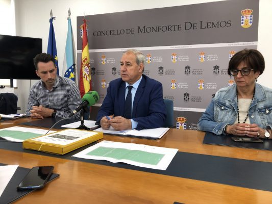 O Alcalde de Monforte, José Tomé Roca, acompañado pola 1ª Tenente de Alcalde, Gloria Prada, e o Técnico de Deportes, Óscar Rodríguez, deu a coñecer onte en rolda de prensa un novo proxecto de infraestruturas urbanas, neste caso deportivas,
