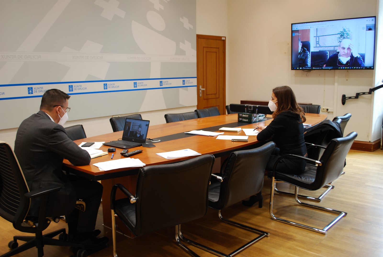 El conselleiro del Medio Rural, José González, se reunió por videoconferencia con el alcalde de Viana do Bolo, Abelardo Carballo y su equipo de gobierno, en una reunión en la que también participó la directora general de la Agencia Gallega de Desarrollo Rural (Agader), Inés Santé.