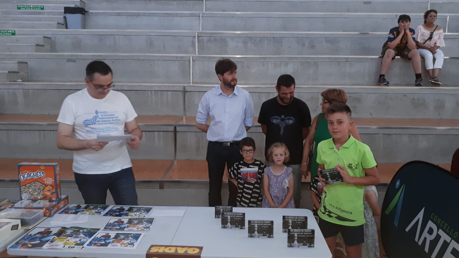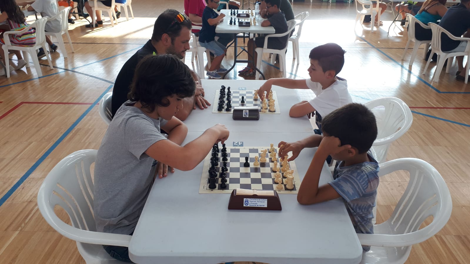 Por la mañana jugaron el XII Memorial Miro de Blitz y por la tarde el XIX Abierto de Arteixo perteneciente al Circuito Intercomarcal de ajedrez rápido de la Diputación de la Coruña.