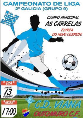 Las mejoras del campo de fútbol «As Carrelas» están prácticamente finalizadas por lo que hoy sábado día 13 se disputará el primer partido de liga del CD Viana en el mencionado campo.