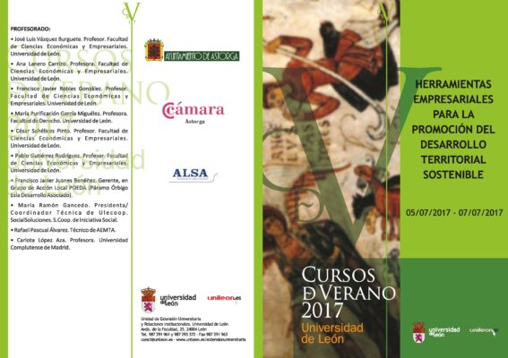 Astorga será escenario del curso de verano “Herramientas empresariales para la promoción del desarrollo territorial sostenible”, del 5 al 7 de julio, organizado por la Universidad de León, el Ayuntamiento de Astorga y la Cámara Oficial de Comercio e Industria de Astorga. Consta de 30 plazas.