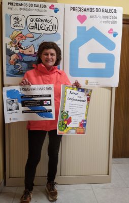 Campaña “DEFENDE O GALEGO”, con la que animan a toda el vecindario a colgar la bandera gallega el día 17 y colocar en los balcones y ventanas una serie de carteles de la campaña “Queremos Galego”, que se repartirán desde el ayuntamiento, a quién así lo solicite. También se repartirán láminas para colorar, para los peques