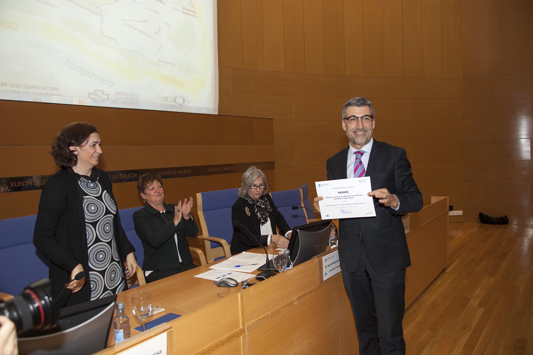 A conselleira de Sanidade, Rocío Mosquera Álvarez, entregará o premio Mellora Continua na Atención ao Paciente, Calidade e Seguridade 2013, á mellor Estrutura Organizativa de Xestión Integrada do Sergas. No salón de actos da Consellería de Sanidade.