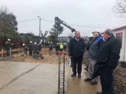 • Tomé, que acudió acompañado del concejal de Servicios, comprobó las tareas de cimentación de los nuevos módulos, en los que se ubicarán las aulas de las renovadas instalaciones del Taller