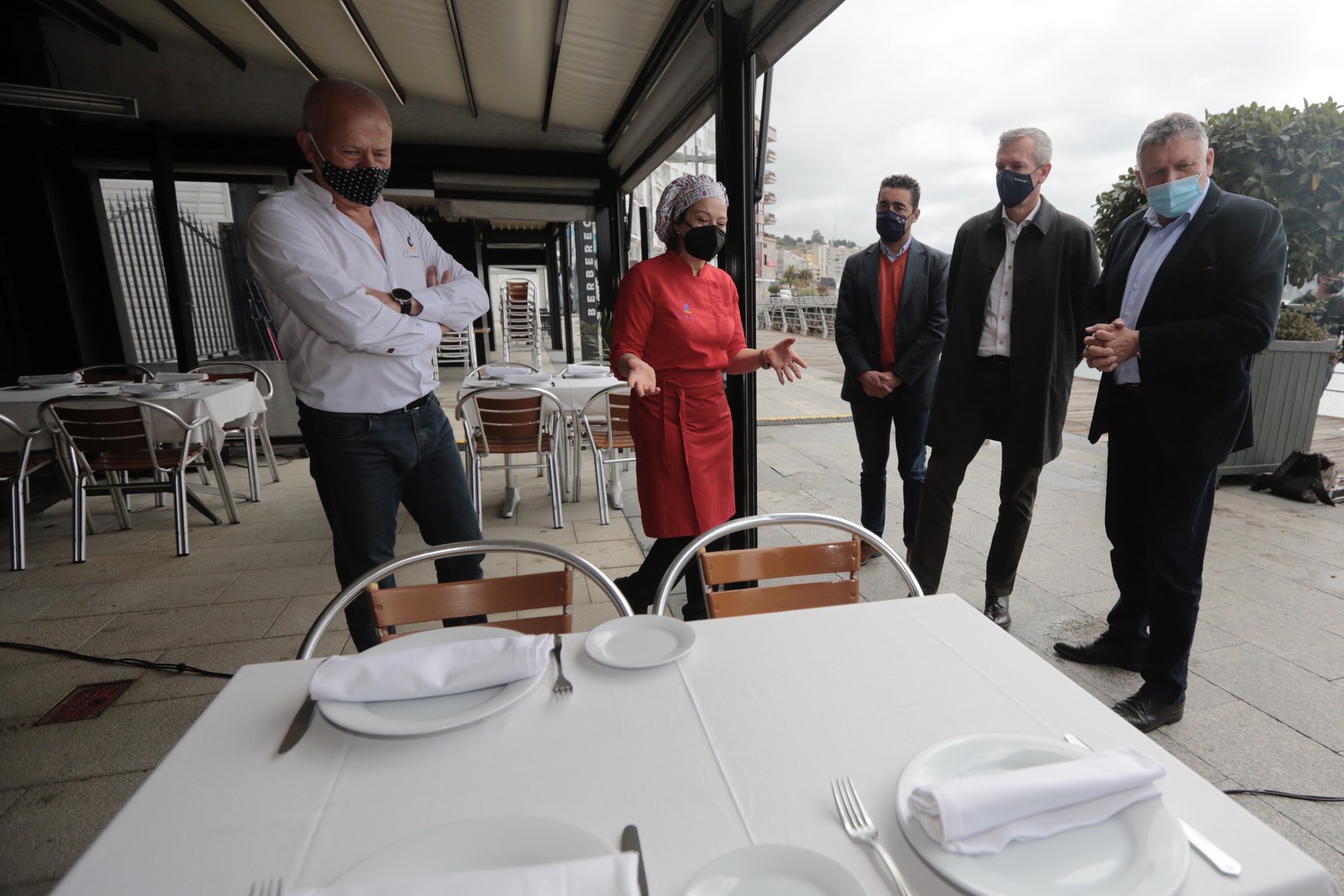 - El vicepresidente primero de la Xunta, Alfonso Rueda, visitó ayer en Sanxenxo, uno de los establecimientos beneficiados de esta orden de ayudas por la cual el Gobierno gallego busca dar la máxima seguridad al sector de la hostelería en el desarrollo de su actividad, en el marco de las medidas de protección de la salud ante la covid-19
