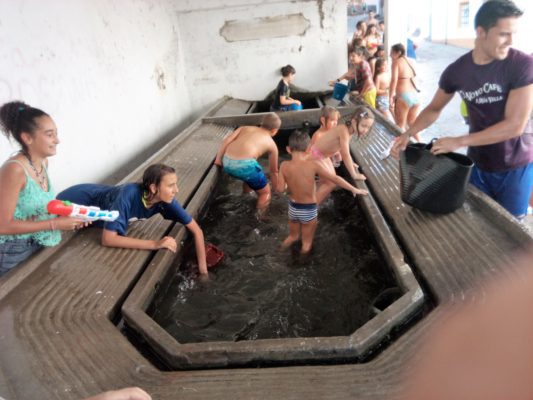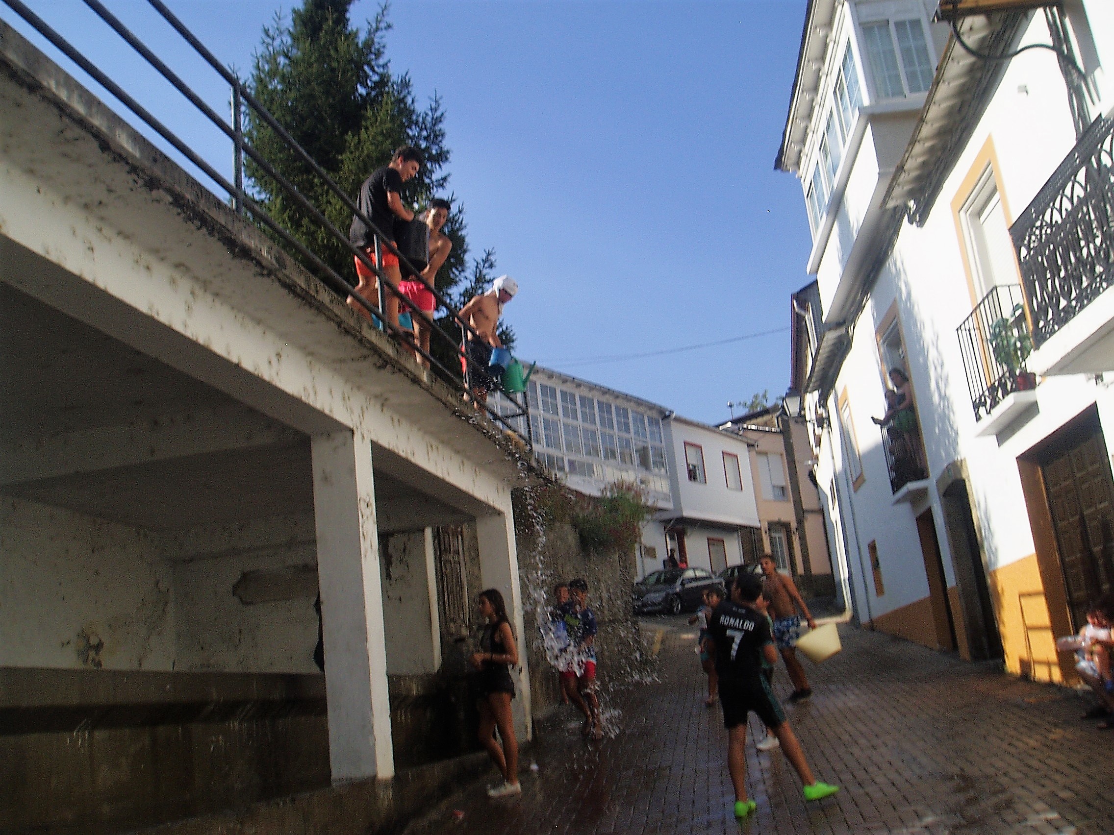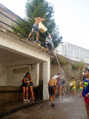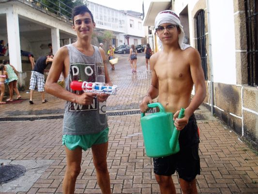 El lunes fue el día de los niños durante las fiestas de San Roque de A Rúa Vella. Los más pequeños disfrutaron de toda una fiesta del agua en la Plaza César Conti, tomada del lavadero público, y corrieron en una “batalla” sin cuartel en la que emplearon sulfatadoras, pistolas de agua, regaderas y cubos, entre otros utensilios.