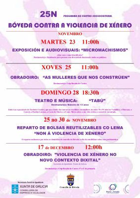 - O Concello de Bóveda programa diversas actividades dirixidas a diferentes colectivos para amosar o seu rexeitamento á violencia machista co motivo do 25N