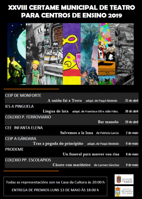 El jueves 25 de abril comienzan las representaciones del XXVIII Certamen Municipal de Teatro para Centros de Enseñanza de Monforte.