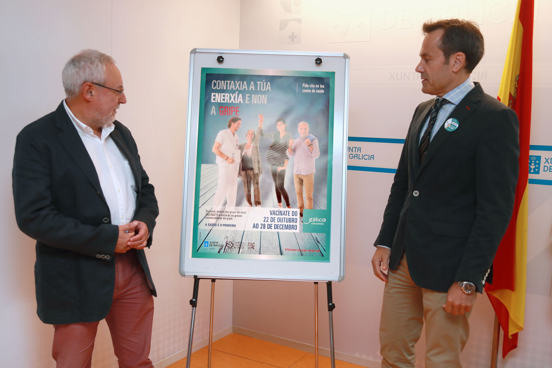 El director general de Salud Pública, Andréz Paz-Ares, anunció el inicio de la campaña de vacunación de la gripe 2018 a partir de 22 de octubre y explicó las novedades de la campaña de este año, bajo el lema ‘Contaxia a túa energía e non a gripe’. La Consellería de Sanidad adquirió este año un total de 608.000 dosis, 48.000 más que la pasada campaña, y destinó un presupuesto que ascendió a 2.183.220 euros, 226.980 euros más que en el año 2017.