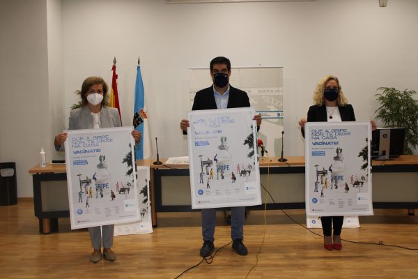 El delegado territorial de la Xunta en Ourense, Gabriel Alén, la jefa territorial de la Consellería de Sanidad, Laura López, y la coordinadora asistencial de la campaña en Ourense, Josefa Rodríguez, presentaron esta mañana la campaña de vacunación antigripal 2021 en la provincia de Ourense, que tendrá como principal novedad la administración simultánea de las vacunas de la gripe y de la covid-19 entre la población de 80 o más años así como la implementación secuencial por grupos de población.