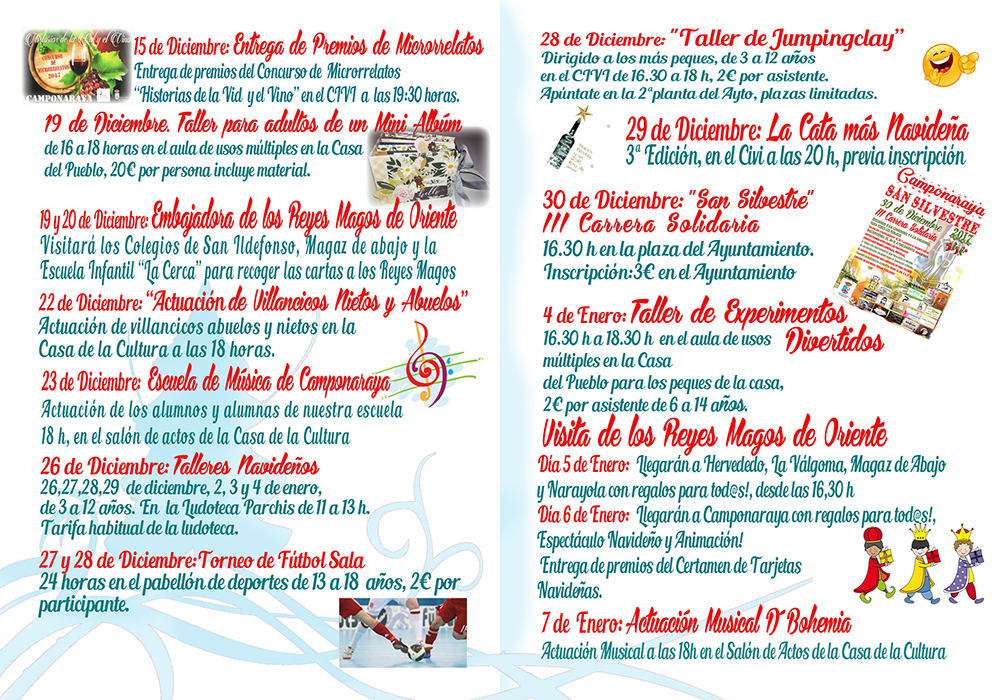 El 6 de enero de 2018, llegarán a Camponaraya, cargados de regalos, y habrá un espectáculo de animación. La jornada se aprovechará también para entregar los premios del Certamen de Tarjetas Navideñas.