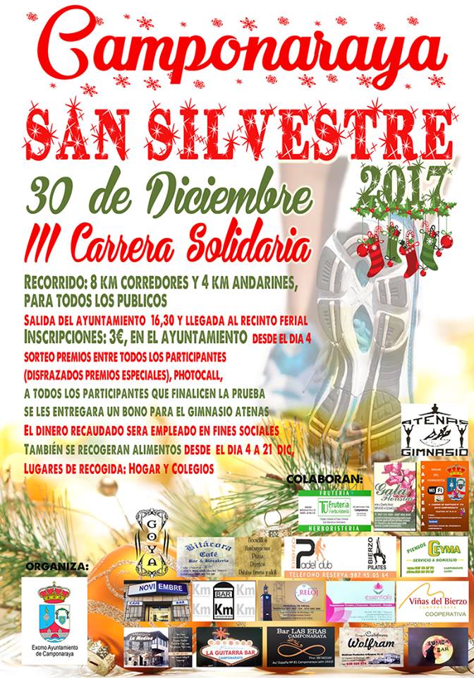 El 30 de diciembre llega “San Silvestre, la III Carrera Solidaria”, a partir de las 16,30 horas en la Plaza del Ayuntamiento. El precio de inscripción son 3 euros.