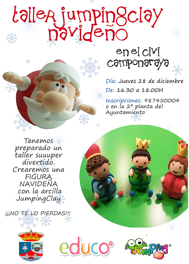 El 28 de diciembre es el turno para un Taller de Jumpingclay, en el Civi, de 16,30 a 18,00 horas, para niños de 3 a 12 años. El objetivo es confeccionar una figura navideña de arcilla. El precio del taller es de 2 euros por asistente.
