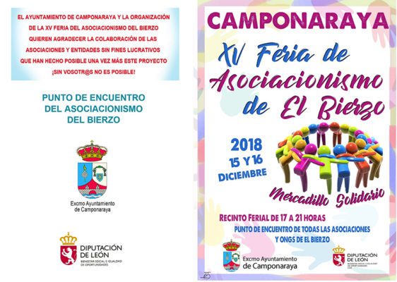 El Recinto Ferial de Camponaraya acoge el próximo sábado y domingo, días 15 y 16 de diciembre, la XV Feria de Asociacionismo de El Bierzo. El horario será ambos días de 17:00 a 21:00 horas.