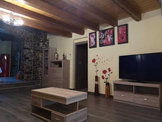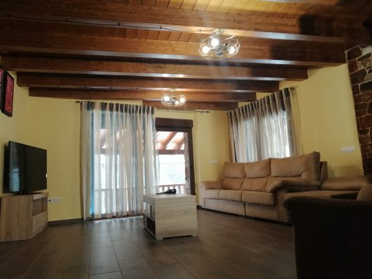 Nos acercamos y encontramos su amplio aparcamiento gratuito. La atención es seña de identidad de la propiedad que nos muestra sus impresionantes seis dormitorios independientes, sus tres cuartos de baño, una amplia sala de estar con todas las comodidades, su llamativa y funcional cocina y su impresionante terraza, volveremos a ella, su orientación, las vistas y la sensación de bienestar merecen capítulo aparte. Su capacidad es más que suficiente ya que es para doce personas y es posible ampliarla. Gratamente sorprendidos con el espacio de esta casa rural completa, de alquiler íntegro.