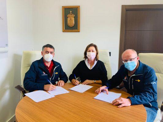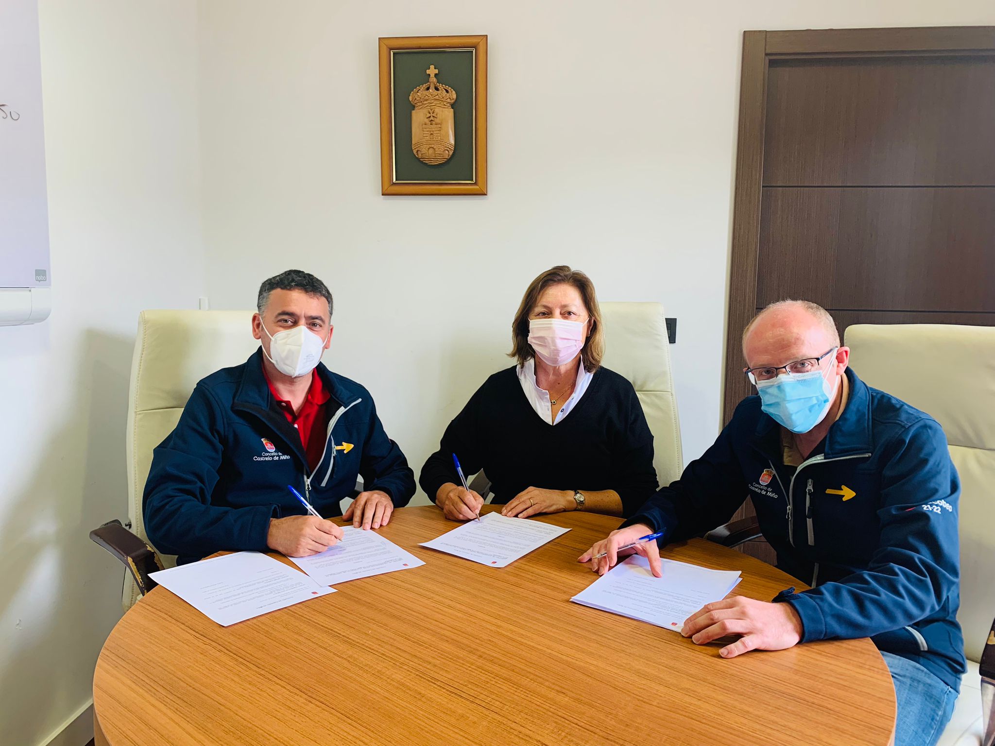 O alcalde de Castrelo de Miño, Avelino Pazos, a presidenta do Club Náutico, Beatriz Alberte e o tenente alcalde José Antonio Ferreiro, veñen de asinar un convenio de colaboración para o uso do catamarán durante os meses de xullo, agosto e setembro como embarcación en actividades turístico – culturais que poñan en valor o patrimonio do concello.