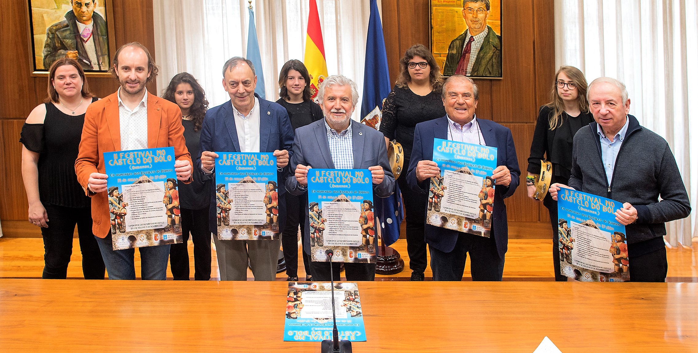 Música tradicional y cultura medieval se dan cita un año más en O Bolo, en la segunda edición del “Festival no castelo de O Bolo”, un evento que tendrá lugar el día 14 de julio, a las 17.00 horas, y en el que se homenajea este año al grupo de música tradicional “Os Rosales” de Rianxo. La presentación tuvo lugar en el Pazo Provincial, con la participación del vicepresidente de la Diputación de Ourense, Rosendo Fernández; el diputado de Cultura, Manuel Doval; el director de la Escuela Provincial de Gaitas, Xosé Lois Foxo; el alcalde de O Bolo, Manuel Corzo; y el gaitero, Óscar Ibáñez.