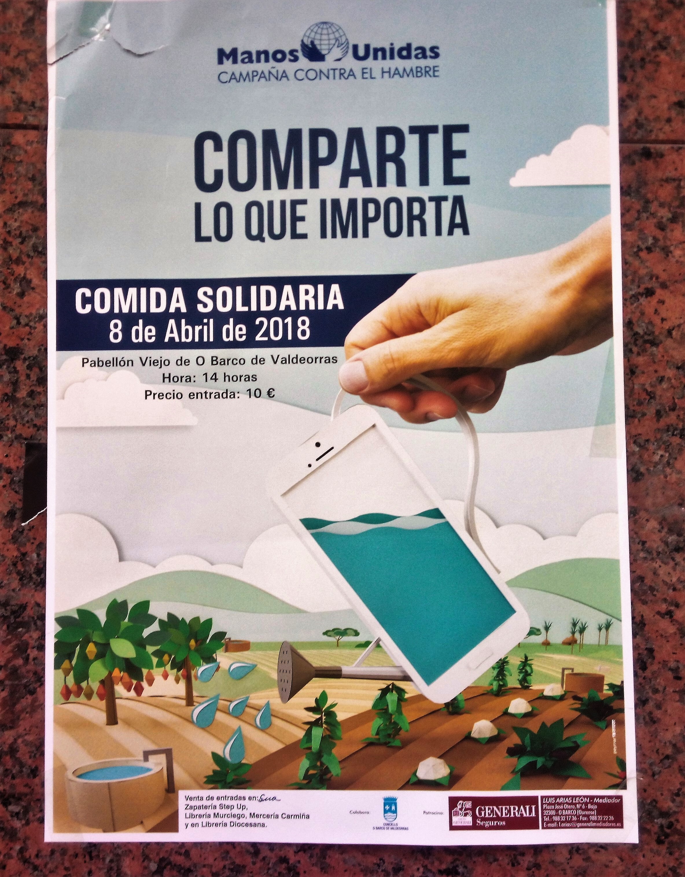Mañana domingo, 8 de abril, el pabellón viejo de O Barco de Valdeorras acoge una comida solidaria, a partir de las 14,00 horas, organizada por Manos Unidas dentro de su Campaña contra el hambre.
