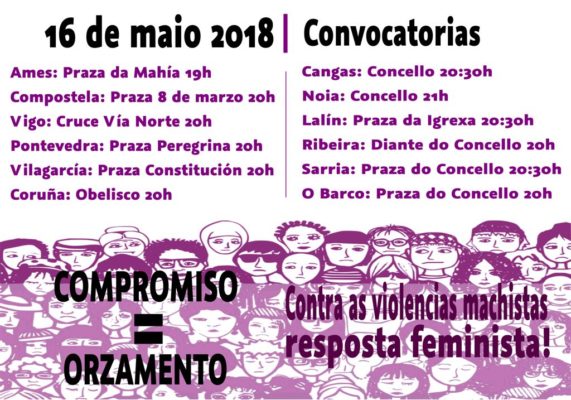 Esta concentración también se desarrollará en otras localidades de Galicia en la misma jornada del martes como  Ames, Santiago, Vigo, Pontevedra, Vilagarcía de Arousa, A Coruña, Cangas, Noia, Lalín, Ribeira y Sarria.