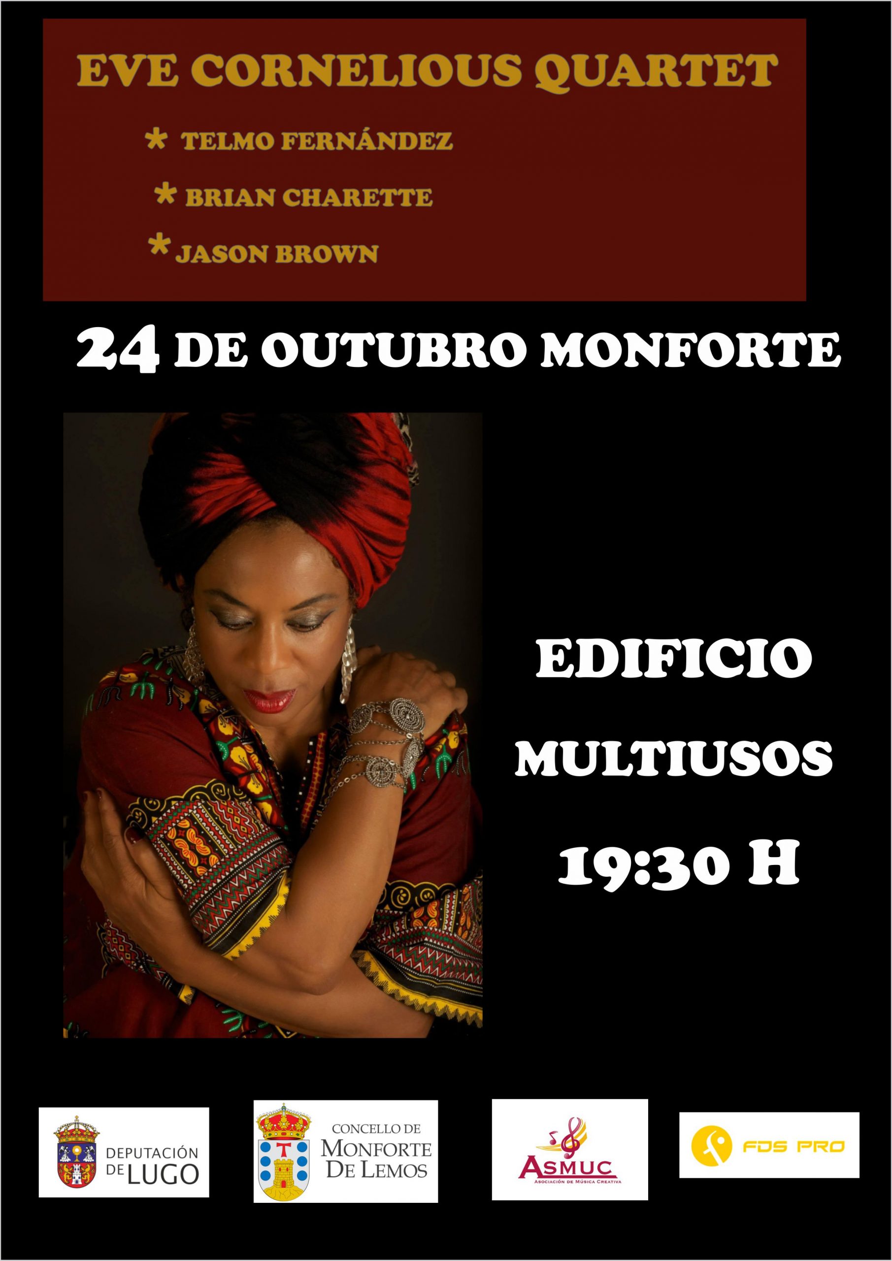 O Concello de Monforte de Lemos segue a programar actividades culturais no mes de outubro, e nesta ocasión, mañá domingo 24 de outubro ás 19:30 h e no Edificio Multiusos terá lugar un concerto de jazz a cargo do grupo Eve Cornelious Quartet.
