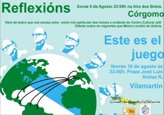Débora Álvarez Moldes, directora de As Letras de Florencio Delgado Gurriarán, señala que este proyecto colabora de manera especial a través del grupo Jalil Gibrán y la representación que tendrá lugar en la Aira dos Bolos de Córgomo, interpretación en la que “el grupo de teatro aceptó nuestra propuesta de mostrarnos la visión que los habitantes mexicanos tuvieron de los movimientos poblacionales que los gallegos y gallegas protagonizamos en el siglo pasado”.