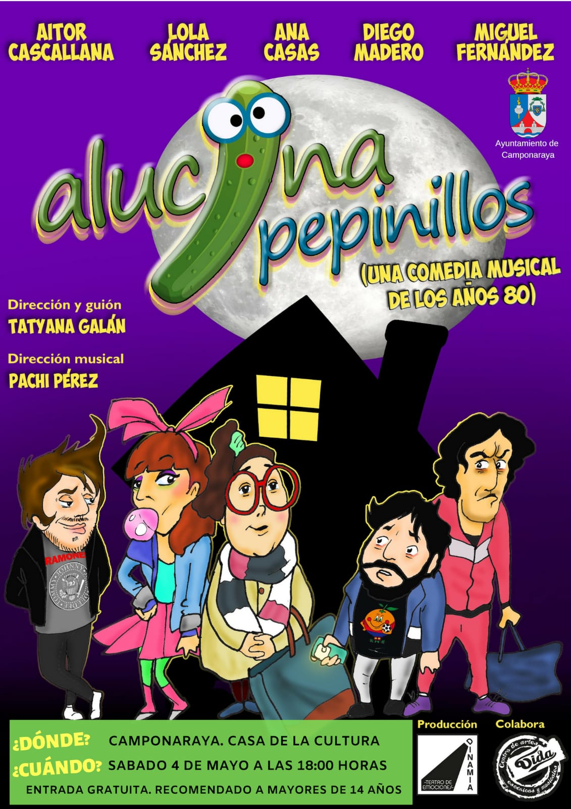 Para poner un punto y seguido en la programación cultural del municipio, en el salón de actos de la Casa de la Cultura el sábado 4 de mayo a las 18:00 horas, Dinamia Teatro representará ¡Alucina pepinillos! (Una comedia musical de los años 80). El espectáculo está recomendado para mayores de 14 años.