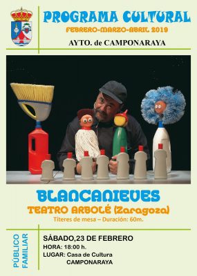 Arranca hoy sábado día 23 de febrero a las 18:00 horas  en el salón de actos de la Casa de la Cultura con “Blancanieves” un espectáculo familiar de la compañía Teatro Arbolé.