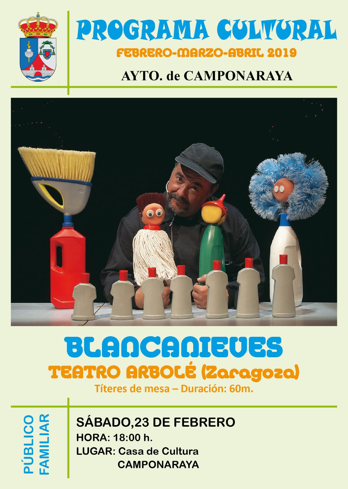 Arranca hoy sábado día 23 de febrero a las 18:00 horas en el salón de actos de la Casa de la Cultura con “Blancanieves” un espectáculo familiar de la compañía Teatro Arbolé.