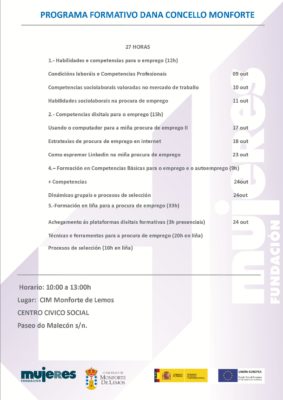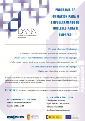 El Ayuntamiento de Monforte, a través del Centro de Información a la Mujer (CIM), va a impartir el programa formativo DANA, dirigido a mujeres que estén en proceso de búsqueda de empleo.
