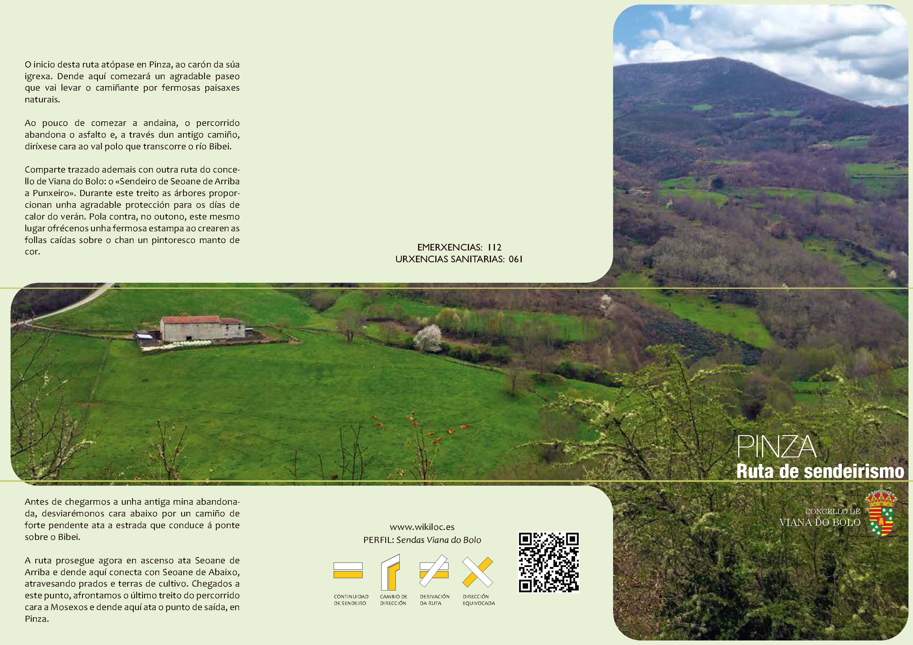 - Ruta de Pinza, con 11 kilómetros, que arranca en Pinza y pasa por zonas de bosques, prados, zonas agrícolas, típicas del entorno que rodea a Viana do Bolo