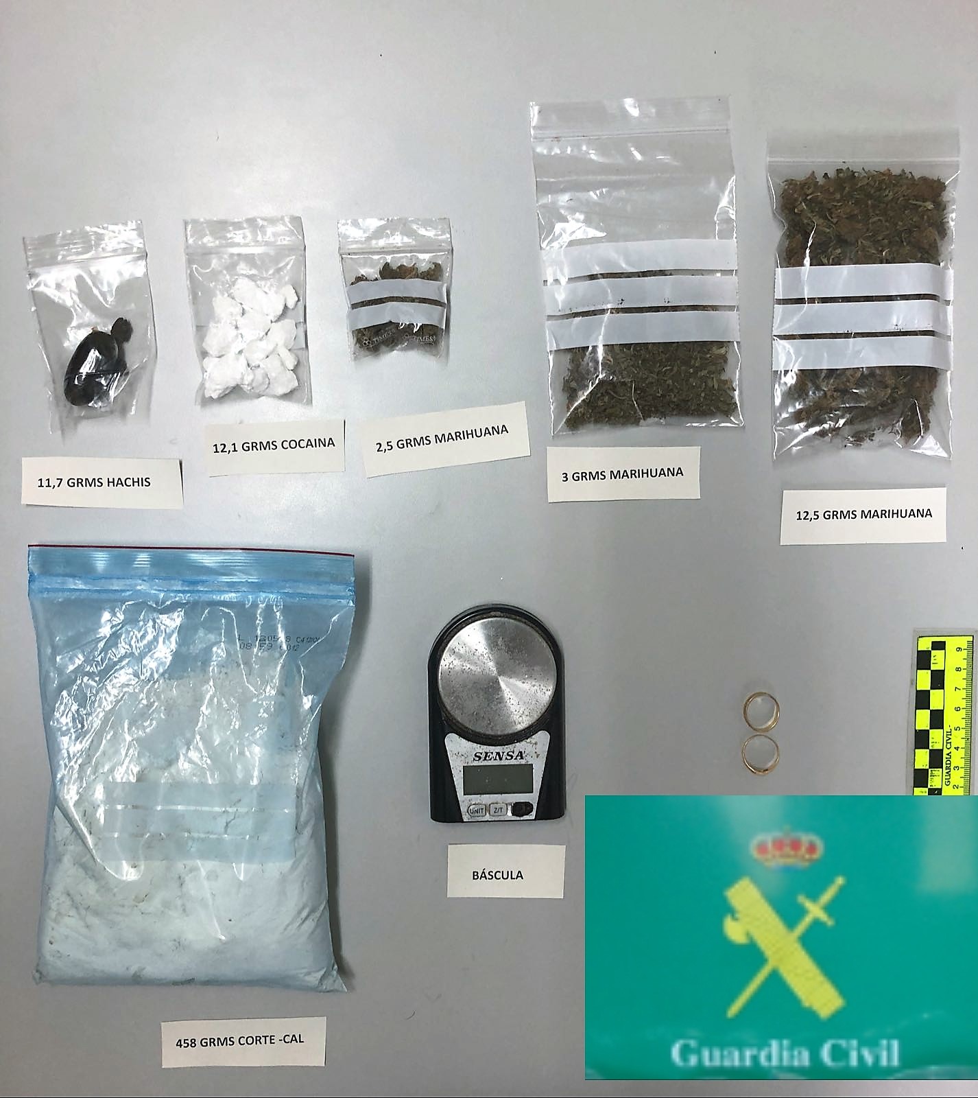 El detenido, después de pasar a disposición judicial, quedó en libertad con obligación de personarse tres veces a la semana en el Juzgado a la espera del análisis de las sustancias.