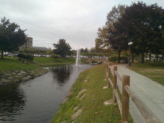 Nos primeiros pasos cara á rúa do Cardeal imos a carón do Parque dos Condes hoxe espazo público de lecer que foi horta do Colexio dos Escolapios. No parque atopamos outras dúas esculturas de xentes de letras: a do cardeal Rodrigo de Castro e a do que foi cronista local Chicho Balado.