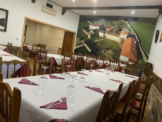 O que xa se facía e o mesmo desde que abrimos. Dedicámonos a comidas tradicionais, cociña galega e os sabores do pobo, como a carne, temos unha carne moi boa, un pan moi bo, un viño moi bo e todo de aquí. Facemos tamén un bacallau á portuguesa cun guiso de verdura e unha base de pataca panadeira ao forno que gusta moito; churrasco, polbo, temos un polbo moi bo.