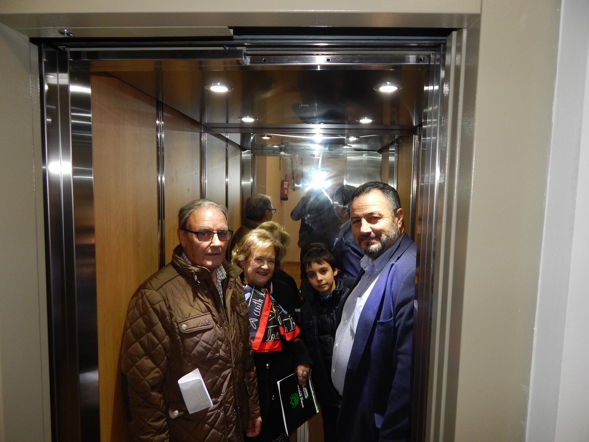 Yolanda Ordás en el viaje inaugural del elevador de la Casa de la Cultura de Camponaraya