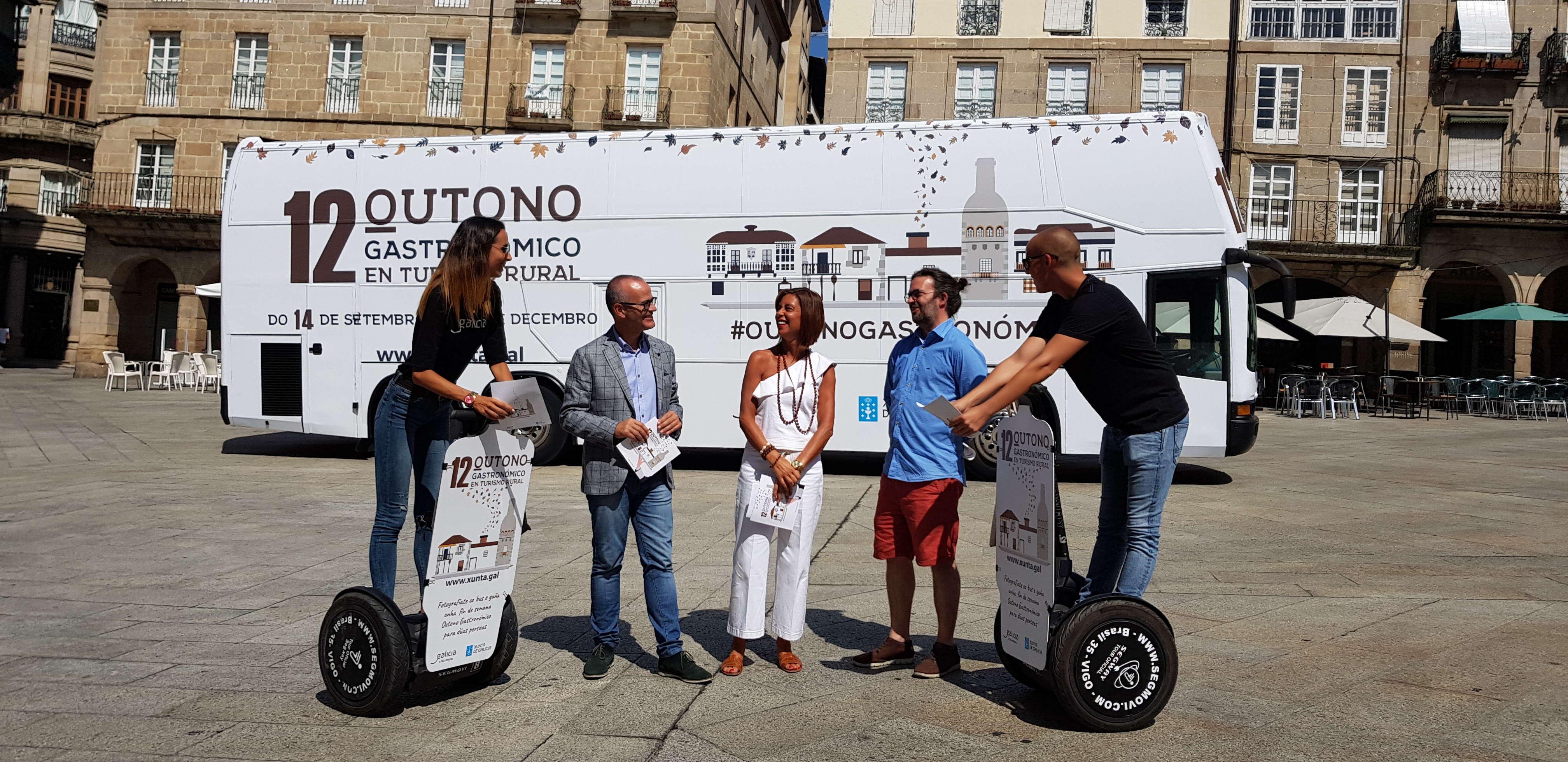 Como novedad se incluyó este autobús promocional en el que también se sortearán 10 Fines de Semana Otoño Gastronómico para dos personas. Para eso, quien esté interesado deberá hacerse una foto con el bus del 12º Otoño Gastronómico y subirla al Facebook de Turismo de Galicia. Este autobús, rotulado con la imagen de la campaña, permanecerá el día de hoy martes desde las 12:00 hasta las 16:00 horas en la Plaza Mayor, por lo que la representante del gobierno gallego animó a toda la ciudadanía a visitarlo y aprovechar para participar en el sorteo.