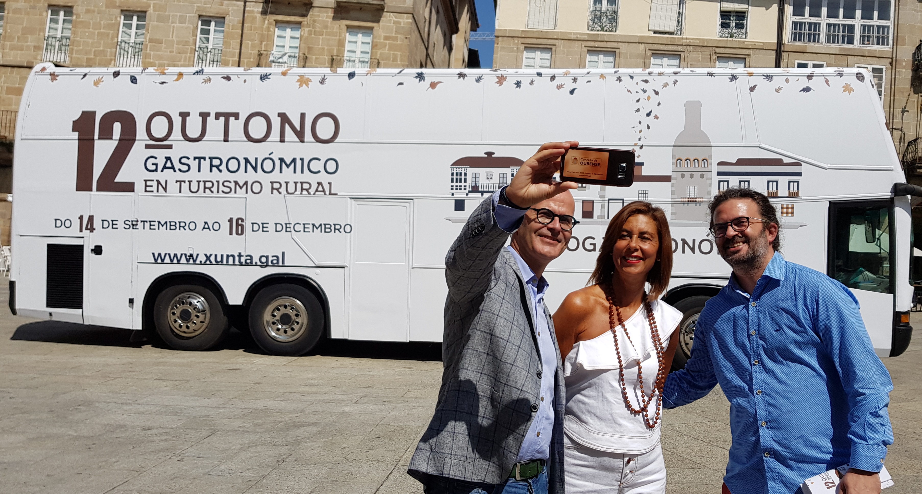 - La delegada territorial de la Xunta en Ourense junto con el alcalde de la ciudad visitaron el autobús promocional de la 12ª edición del ‘Otoño gastronómico en turismo rural’
